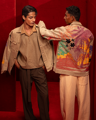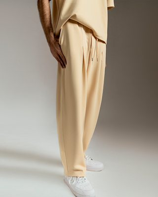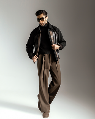 ‘Canyon Brown’ Wide-Leg Pleated Wool Trousers with Detachable Belt
