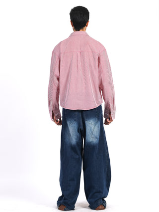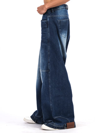 Washed Blue Rigid Denim Wide Leg Upside-Down Denim Jeans